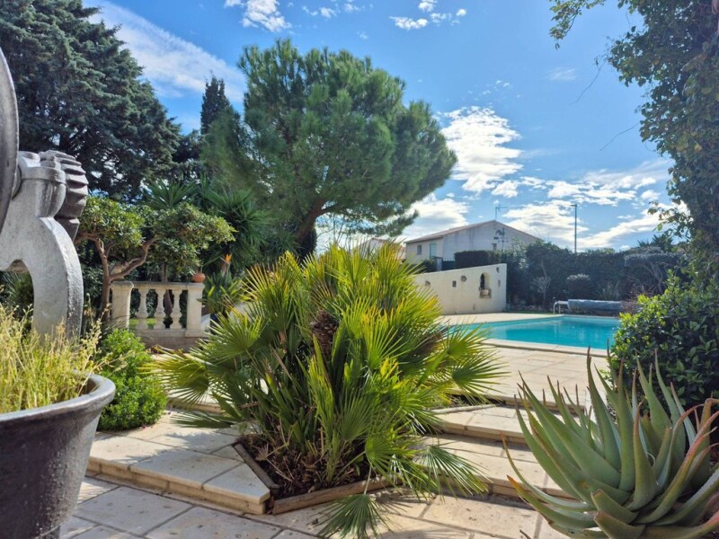 EXCLUSIVE LISTING IN FLEURY D'AUDE :This spacious late 19th-century family home (built in 1870) offers 320 m² of living space, opening onto a magnificent south-facing, tree-lined garden, secluded from view, with a pool and inviting outdoor spaces. This charming residence features six bedrooms, perfect for hosting family and friends. Inside, generous volumes spread over three levels include bright living areas and a beautiful convertible attic, offering numerous possibilities. The façade’s architectural details preserve the home's historic charm and period style. Outside, the loggia allows for year-round enjoyment of the garden, while a second terrace overlooks the greenery, offering a lovely perspective of the surroundings and a view of the windmill. The property includes two large garages (54 m² and 42 m²), one of which can be converted into an outbuilding to suit your needs. This home boasts great potential, enhanced by its excellent energy efficiency, thanks to underfloor heating on the ground floor, a heat pump, and solar panels.