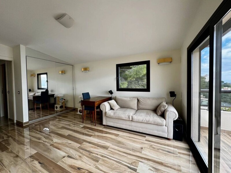 Just steps away from Monaco, this magnificent duplex offers breathtaking views of the Principality, the Monte Carlo Country Club tennis courts, and the Mediterranean Sea. With an elevator that leads directly to the first level, the property features an entrance, a small office, an open kitchen overlooking a spacious living room, a master bedroom with a walk-in closet, and two bathrooms (his and hers). A 20 m² terrace extends the living spaces outdoors, providing an ideal setting for relaxation. On the second floor, there is a second kitchen, an additional bedroom, a bathroom, and a separate toilet. A large 50 m² terrace allows you to fully enjoy the exceptional view, whether for outdoor dining or moments of conviviality. This property also includes a large private garden, a garage with a mezzanine that can be used as storage, and a separate storage space (small cellar). With its generous spaces, high-quality finishes, and ideal location, this unique duplex is a rare opportunity at the gates of the Principality.