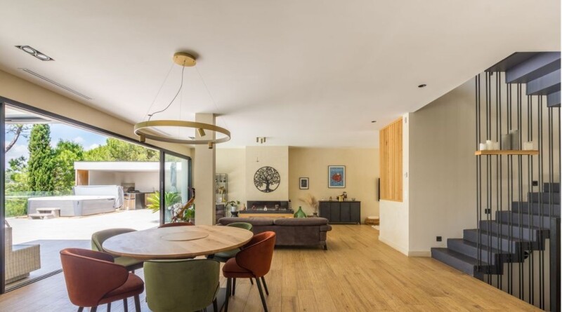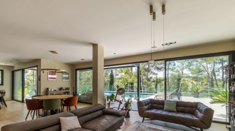 Luxurious property in Montpellier which will delight a family wishing calm, volumes, technology and relaxation. Superb contemporary villa of approximately 600m2 on its land of approximately 3500m2 built in 2020, nestled out of sight 5 minutes from Montpellier. On the ground floor, you will appreciate the large living room of approximately 95m2 open to the outside, letting you discover the beautiful terrace with its summer kitchen, the jacuzzi with its view of nature and the 11x5 swimming pool. In the extension of the ground floor, a sleeping area with a large parental suite of approximately 48m2. Also on the ground floor a bright office area opening onto a beautiful private terrace. Upstairs, 4 large bedrooms with their private bathrooms, toilets and a large play area opening onto a large terrace overlooking nature. On the ground floor, you will enjoy approximately 200m2 of "Entertainment" space: Cinema room, gym, large room to invite friends over, wine cellar, bathroom, toilet and a large office of approximately 75m2 open onto a terrace giving you access to a Sauna. Top-of-the-range services: The villa is fully automated by the latest generation home automation (roller shutters, alarm, video surveillance, gate + garage opening, lighting, controlled sockets & garden lighting), bay windows, ducted air conditioning, Pool-house , summer kitchen, heated swimming pool 11x 5 (Bali tiles, underwater rolling electric shutter, reversible floor, automatic watering, bioclimatic pergola, gardens, terraces and playground. A large garage of approximately 120m2 will accommodate your beautiful vintage cars. The architecture has been designed to satisfy a very comfortable mediterranean lifestyle.