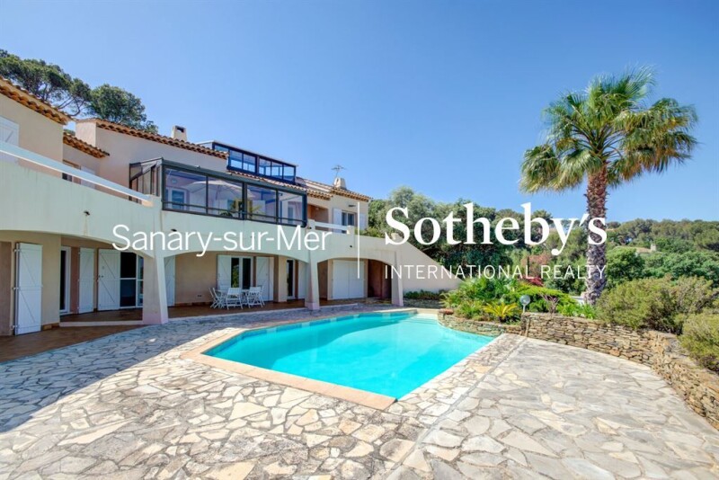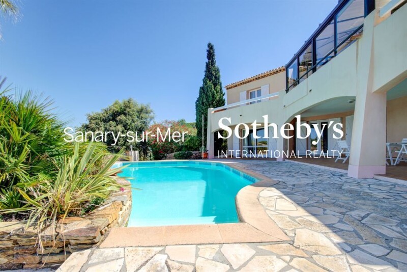 Located on the heights of Le Brusc, this splendid property of 285 sqm on a land of 1 300 sqm offers a sea view on the islands of Embiez and the bay of Sanary-sur-Mer. The house organized on 2 floors offers a living space, 4 bedrooms (one on the ground floor), 3 bathrooms, 2 kitchens, a mezzanine. A swimming pool area dedicated to relaxation as well as many terraces, a closed garage and an undeniable potential. Possibility of transformation into several dwellings. An idyllic living environment by its calm and its green environment close to the port of Le Brusc and the beaches.