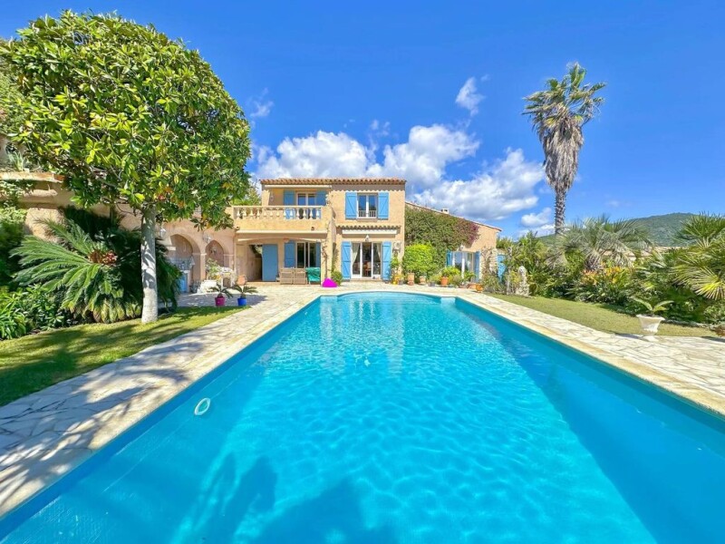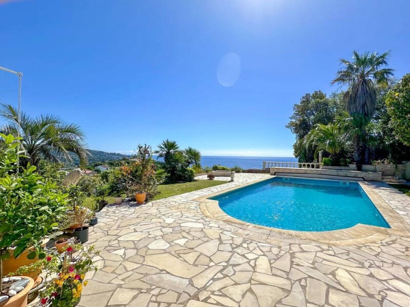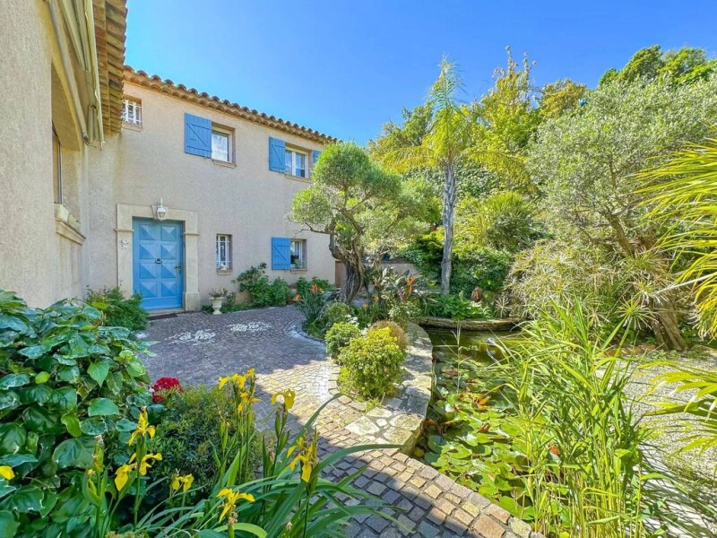 In a secure estate facing the beach, in the bustling seaside town of Sainte-Maxime, Provencal villa with stunning sea view. Set in 1600 m2 of beautiful grounds decorated with a landscaped patio. Once inside you will step into the entrance hall, leading through into the living room with fireplace, dining room and kitchen opening onto a large pool area with summer kitchen and solarium. A second living room converted into a billiards room. 3 bedrooms, 1 bathroom, 2 showers, and a secure garage. Peaceful location, not overlooked, set on fully accessible land, with its lovely petanque court, fabulous pool area with a 12 x 5m heated saltwater pool. Bursting with charm and authenticity. Contact us today to find out more.