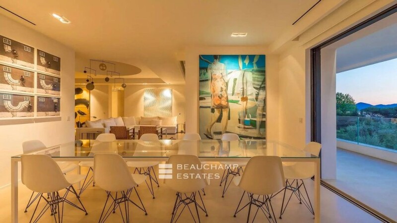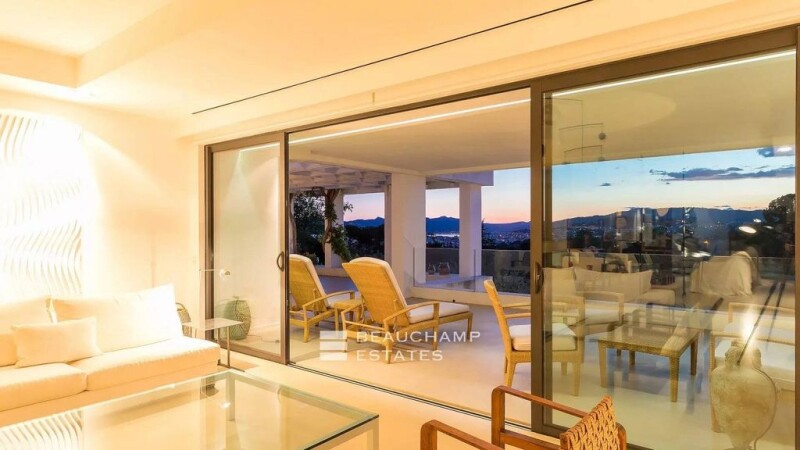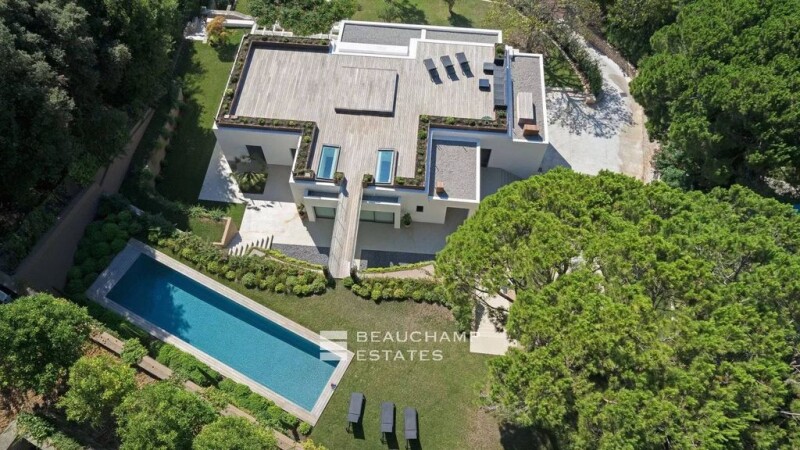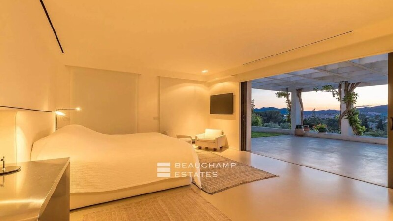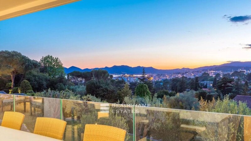 SOLE AGENT Located in the California district, on a vast plot of land of approximately 3000 m² with a 17 x 4 meter swimming pool, this sumptuous villa with pure lines offers a living area of 450 m² with 5 bedrooms. The living room is an invitation to moments of sharing, with the Bay of Cannes and the Estérel mountains in the background. A teak terrace on the roof to admire the Riviera sunsets. -Spread over two levels, the property with its refined decoration includes: On the ground floor, entrance with guest toilet, living room and lounge opening onto a bright terrace, library, independent kitchen, pantry and a master bedroom with dressing room, bathroom and separate toilet. The garden level includes four other bedrooms, three of which have private bathrooms and separate toilets, offering a breathtaking view and plenty of storage space, a bathroom with separate toilets, a wine cellar and a Vault. Energy class : C - Climat class : A / estimated annual costs for standard use : between 4 380€ and 5 990€ (ref year 2021). Information on the risk to which this property is exposed is available on the Geohazards website : www.georisques.gouv.fr.
