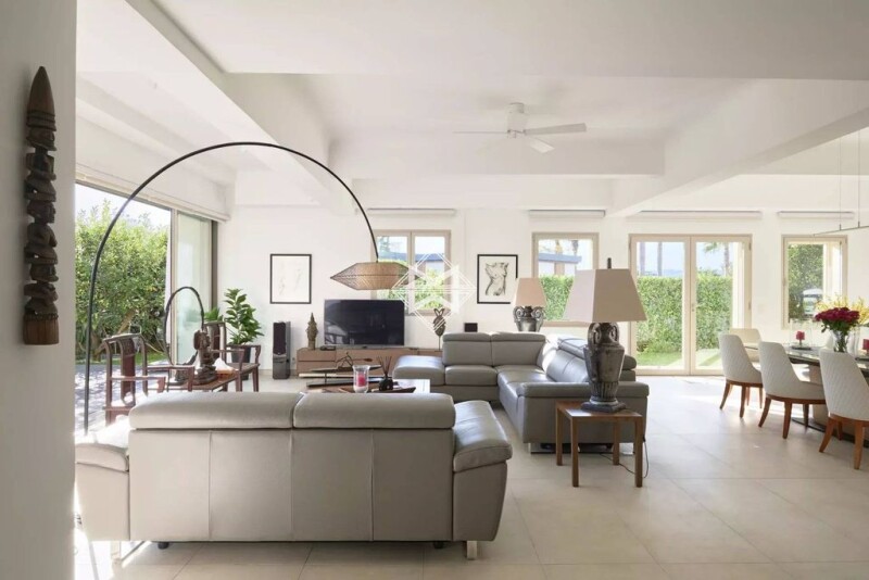 Superb renovated villa built on several floors and enjoying a beautiful sea view. Located on flat land with swimming pool and petanque. Private domain at walking distance to the beaches. Made up of an entrance hall, living room and dining room opening onto garden with swimming pool and a shaded terrace, large fitted kitchen opening onto a shaded terrace and petanque. One en-suite bedroom. 1st floor : two en-suite bedrooms, 2 bedrooms sharing a bathroom, fitted kitchen, living and dining room opening onto a large terrace with sea view. 2nd floor: master bedroom with sea view, bathroom and shower, large dressing room and cinema room. Lounge terrace. Parking spaces and garage. Agency fees payable by vendor.