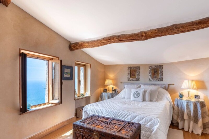 Nestled in the charming historic village of Roquebrune-Cap-Martin, this apartment comprises two connected units that can easily be made independent. The total living area is approximately 235 m², complemented by 52 m² of terraces and annexes. The first apartment spans two levels and includes a living room, a kitchen, guest toilets, a bedroom with an en-suite shower/WC and closet, as well as an office with a closet. The second apartment extends over three levels and features a double reception room with a dining area and a stone fireplace, a functional kitchen with medieval vaults and stones, three bedrooms each with an en-suite shower/WC (three showers and one bathtub), separate toilets, and a mezzanine reading nook. Access to the different levels is via an elevator and stairs, one of which is in stone. As you ascend, the view of the sea, the Principality of Monaco, the Cap Martin peninsula, and Mont Agel becomes increasingly panoramic, culminating in breathtaking vistas from the two terraces. This property stands out for its high-quality materials (Venetian stucco on the walls, wooden flooring), modern installations (reversible UNICO air conditioning system, water softener), and distinctive furnishings and décor, perfectly in harmony with the location and included in the sale. Two parking spaces for rent are also available. This historically rich property is presented by Côte d'Azur Sotheby's International Realty, luxury estate agent in Roquebrune-Cap-Martin, Beaulieu-sur-Mer, and Saint-Jean-Cap-Ferrat.
