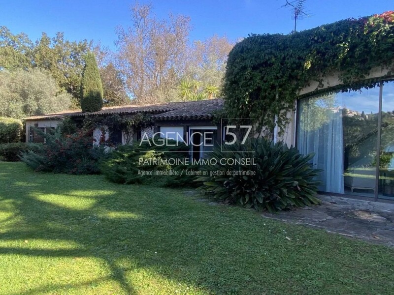 With a wonderful view over the old village of Mougins, touching the Siagne Canal and the ponds of Mougins where you can have a walk, you will find this charming single storey provencal house opening onto a wonderful Mediterranean garden of 3500sqm, very well kept and south/west oriented. No overlooking and nice environnement. A large swimming pool and a charming pool house will make you enjoy the Summer time! In the house you will find a nice living room with a huge chimney enjoying a view over the old village, semi open plan kitchen, 4 in-suite bedrooms with bathroom, a mezzanine and its bathroom. An independant guest house in the garden has to be renovated. Garage, large cellar.