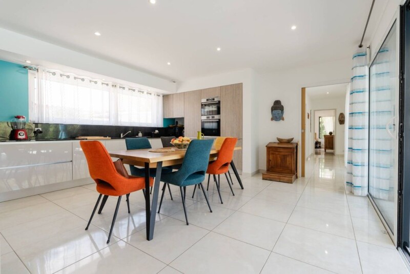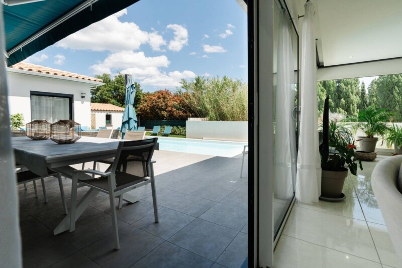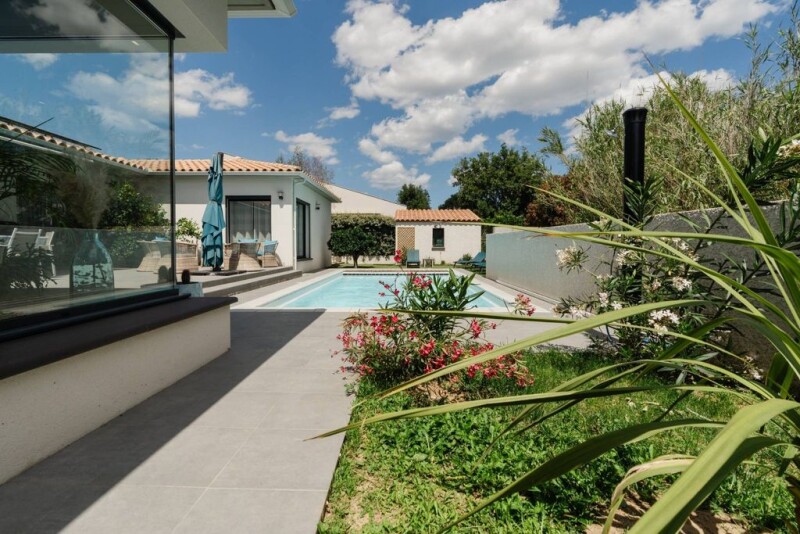 EXCLUSIVITY, in a village south of Perpignan 10 minutes from the beaches of St Cyprien, this refined, single-storey villa with 170m² of living space on a 851m² plot comes with all the comfort you need. The recently built house features a spacious, very bright 77m² living room with direct access to the exterior and 3 master suites, each with fitted wardrobes, shower room and WC. On the technical side, underfloor heating, a heat pump, centralised roller shutters and a garage of over 33m² all contribute to a comfortable pace of life. The garden, with its swimming pool and sheltered terrace, is the perfect place to relax and unwind. A real rare gem to be viewed without delay!.