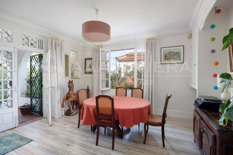 Cap d'Antibes - Located in a most sought-after neighbourhood, this charming 120 m² house sits on a 458 m² plot of land and enjoys an ideal location, just 100 meters from the seafront and 400m from the Garoupe beaches. A rare property on the market, full of potential, that after renovation and redevelopment of the basement and / or the attic, will become an ideal home for a primary or secondary residence in the heart of Cap d'Antibes providing great added value. The villa built in 1928 in a pretty style characteristic of this period, comprises a living/dining room with a fireplace, offering a spacious, bright, and charming living area with its openings to the outside. The sizeable independent kitchen (with direct access to the garden), three bedrooms, an office, two bathrooms, and a separate toilet complete the living space. Outside, you will enjoy a flat, wooded garden of approximately 450 m², a shaded terrace, and a staircase leading to a rooftop terrace (more than 30m²) offering a magnificent view. The semi-buried basement provides a large additional space (approx 100m²) to be used according to your needs (storage, workshop, playroom, wine cellar, technical room (where the recent central heater is located) with 185cm ceiling height. The attic space is also available for development (where the hot water tank is stored). ***Information on the risks this property is exposed to is available on the Géorisques website: georisques.gouv.fr État des risques et pollution: réalisé (2024-07-11).