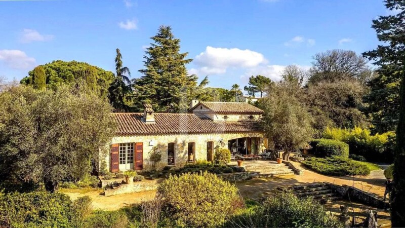 A lot of charm for this beautiful stone property for sale in Mougins, of provencal style and on one level, with a surface of about 203 sqm. It includes a large double reception room, 3 bedrooms with bathrooms, a guest house of about 52 sqm with living room, kitchen and bedroom with shower room. There is the possibility to create the fourth bedroom in the garage. Built on a land of about 4797m² with swimming pool and pond, the property also benefits from a pool house of about 38m2 with living room, kitchen and bedroom with shower room. A janitor's villa with an office, a bedroom and a shower room complete this exceptional property. This property benefits from a beautiful view on the old picturesque village of Mougins and the countryside, with a perfect South West exposure.