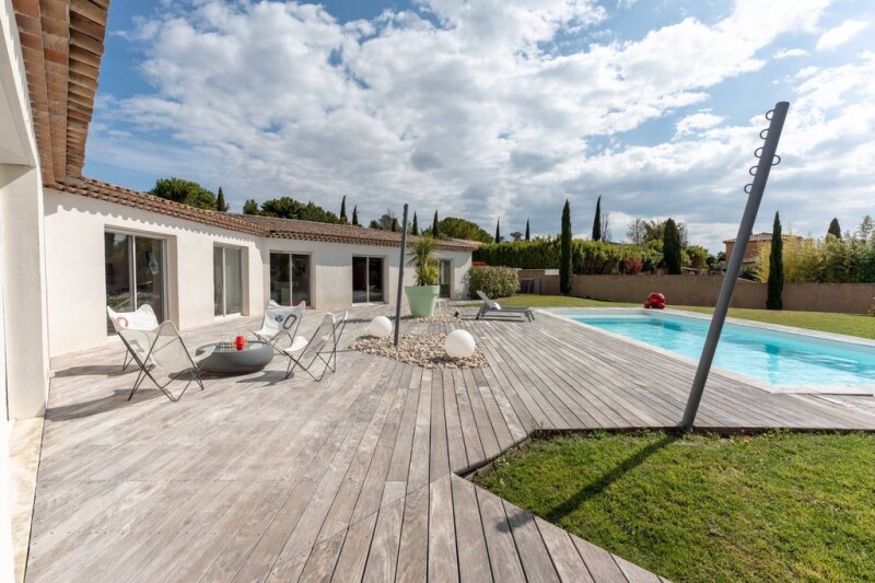 In a sought-after area of Aix-en-Provence, this magnificent 260 sql villa stands out for its privileged living environment. It offers a superb, perfectly maintained garden of 2600 sim, a generous terrace, not overlooked, for unparalleled moments of relaxation. A large living room bathed in light. American kitchen open to a dining room. Desk. South facing and large openings in each room guaranteeing natural light throughout the day. The house is equipped with quality services: roller shutters, double glazing, air conditioning and electric gate, ensuring comfort and security. The outdoor space, with its swimming pool and jacuzzi, its summer kitchen, its bowling alley, invites relaxation and conviviality. An apartment of approximately 40 sql is adjacent to the house (good rental yield). A spacious garage completes this exceptional property. Its impeccable condition, its optimal brightness and its excellent exposure make this property a true rare pearl on the market. A prime location, close to road and transport access, combining tranquility and amenities. This house is the embodiment of refinement and comfort, for those seeking elegance and serenity in Aix-en-Provence.