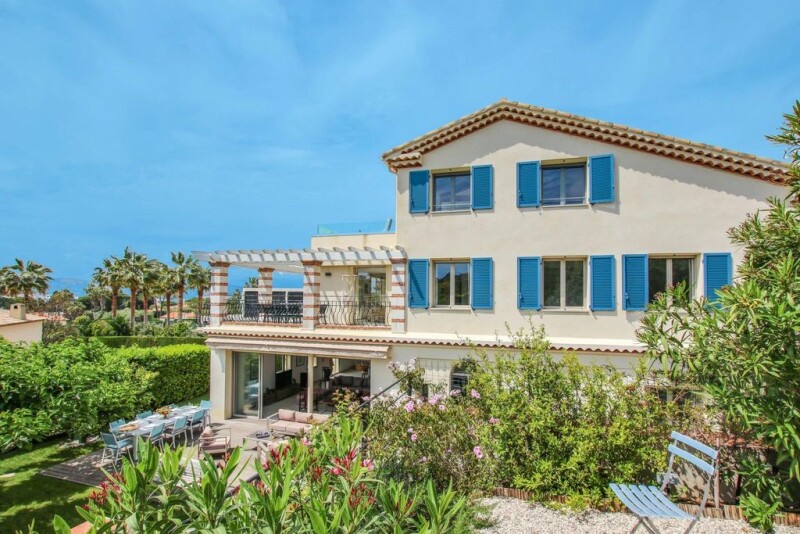 Superb renovated villa built on several floors and enjoying a beautiful sea view. Located on fully planted and enclosed flat plot decorated with swimming pool and petanque area. Within a private domain at walking distance to the beaches. Made up of an entrance hall, down a couple of step into a grand living room and dining room opening onto garden with swimming pool and a shaded terrace, large fitted kitchen opening onto a shaded terrace and petanque. One en-suite bedroom. 1st floor : two en-suite bedrooms, 2 bedrooms sharing a bathroom, fitted kitchen, living and dining room opening onto a large terrace with sea view. 2nd floor: master bedroom with sea view, bathroom and shower, large dressing room and cinema room. Lounge terrace. Parking spaces and garage.