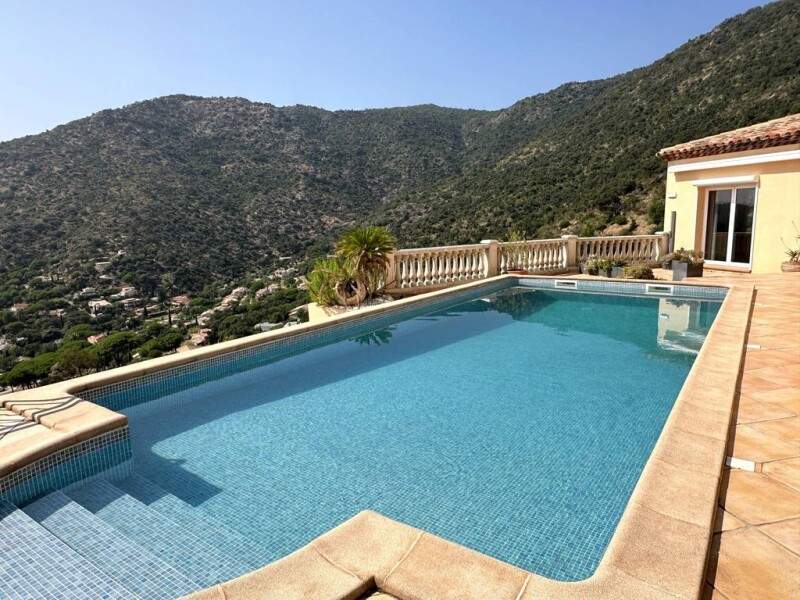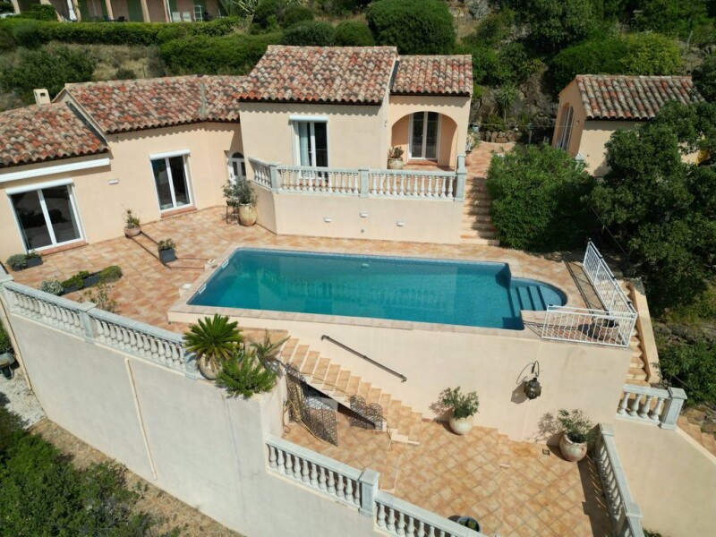 Come and discover this beautiful villa with a sea view swimming pool set in an elevated setting looking down onto the Mediterranean. Fully enclosed grounds of 1488 m2, this superb family villa comes with parking and a secure garage, various terraces to relax and unwind upon, superb pool and pool house plus additional storage space in its basement. Currently inside luxury living spaces including a split level large dining and living room (double aspect with sea views) with unique fireplace, an ultra modern made to measure fitted and equipped kitchen, 2 bedrooms, a shower room and a bathroom. Outside there is a pool house, several terraces and a garden planted with trees. A garage and basement complete this property in a sought-after location.