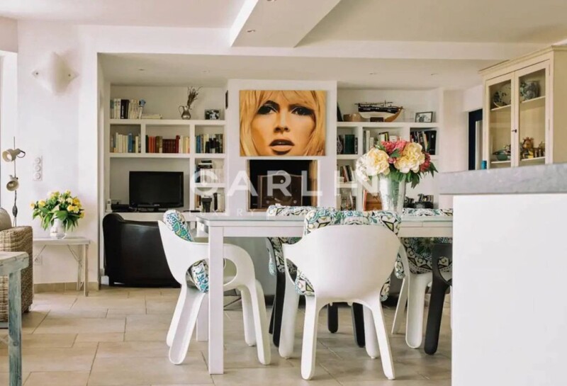 This charming quiet villa, with an area of 140m2 and built on a plot of 535 m2, will lull you daily to the sound of the waves and you can wake up every morning facing a breathtaking panorama. It has a large living room/ living room overlooking the sea, as well as an American kitchen, and its large bay windows brings you an incomparable light. The outdoor terrace also allows you to have lunch or dinner facing the sea. This property also has 4 comfortable bedrooms with a private bathroom for each. You can also park up to 5 vehicles, and also have access to a bicycle storage room and a small bowling alley. Lovers of the sea, it will charm you with its rare calm and direct access to the beach of Nartelle, and you can enjoy the joys of swimming, as well as water sports and relaxation of the Mediterranean sun without leaving your property. The surfaces are for information only.