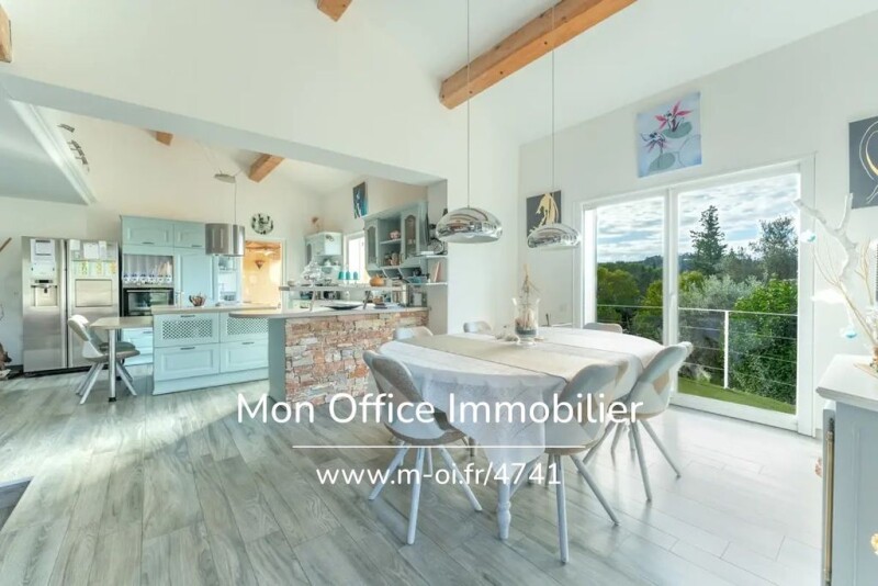 M-OI Saint-Raphaël offers you for sale this beautiful house The address of the property, the virtual tour video and all the financial information are available online on the Mon Office Immobilier website with the reference (Direct link on the photos) Beautiful single-storey house completely renovated in 2012. It consists of a large living room and its American kitchen of approximately 65 m2 and its back kitchen. On the night side, there are two bedrooms that share a bathroom and a very beautiful master suite of 40 m2. The three bedrooms overlook the garden. As for the garden, a beautiful free-form swimming pool, beautiful relaxation areas with a very beautiful covered terrace and multiple parking spaces. A double garage and a second one that would easily allow, depending on the desired surface area, to make the fourth bedroom in one or the other. This house has an unobstructed view without vis-à-vis, within walking distance of shops and a few minutes by car from the city center. -- -- À votre service : Stefania ICART - +33682049948 Agent commercial Mon Office Immobilier immatriculé au RSAC de FREJUS - N°534486550 Référence annonce : 4741-SIC Le DPE est visible dans l'onglet informations énergétiques. Le prix indiqué comprend les honoraires à la charge de l'acheteur d'un montant de 4.50% inclu dans le prix affiché. Les informations sur les risques auxquels ce bien est exposé sont disponibles sur le site Géorisques : www.georisques.gouv.fr.