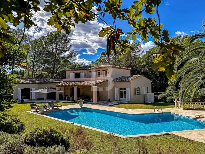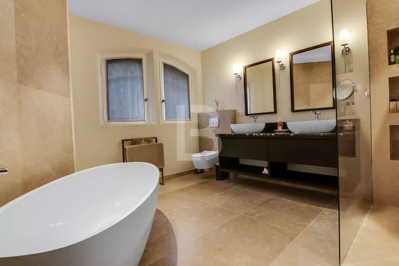 Discover this magnificent family villa of around 270 m², located in the prestigious and secure Parcs de Mougins domain. Completely renovated, this luxury property offers 5 bedrooms with en-suite bathrooms, nestled in the heart of enchanting gardens of around 3,100 m². On the ground floor, you will find 3 spacious bedrooms, including a master suite, all opening onto the gardens and swimming pool. The villa features a vast and very bright 50 m² living and dining room with large French windows giving direct access to the outdoors. A modern, fully-equipped kitchen completes this elegant, convivial space. Upstairs, 2 large en suite double bedrooms benefit from a balcony with stunning views over the gardens. The property's basement includes a games room, laundry room and plenty of storage space. A garage with direct access to the house, as well as several parking spaces, complete this villa ideal for family living in a secure, leafy setting. Located in Mougins, this exceptional villa combines comfort, luxury and tranquillity, close to all commodities.