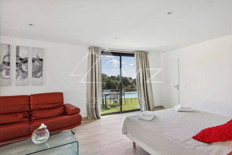 Let yourself be seduced by this beautiful property ideally located in a sought-after estate in the Mons area. It comprises a vast living room with fully-equipped open kitchen and dining room opening onto a deep terrace with breathtaking views, a bedroom with en-suite shower room and a master bedroom with en-suite bathroom. On the garden level, you'll find a sitting area and two en suite bedrooms with shower rooms. A large swimming pool with counter-current stroke complete this property. État des risques et pollution: réalisé (2023-06-23).