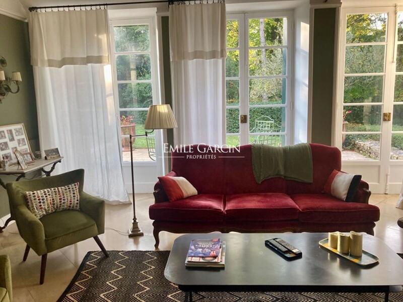Sumptuous bourgeois house, with a total surface area of ??425 m², over 2 floors. On the ground floor, equipped kitchen, living room and lounge. Upstairs, five spacious bedrooms, including two magnificent master suites. The house opens onto a beautiful swimming pool, several terraces ideal for relaxing or entertaining, as well as various outbuildings to be converted. The former caretaker's house houses a 100 m² professional space, perfectly suited to an independent activity or a reception project. Wooded land of 5,000 m², including 2,000 m² buildable with independent access, as well as a carefully maintained French garden.