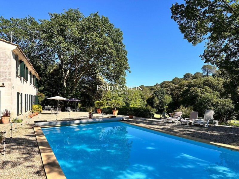 15 minutes from Uzès, stone farmhouse ideally located, in a picturesque village with shops necessary for your daily comfort. Nestled in a 4.6 hectare green setting with a large swimming pool, a peaceful and nuisance-free setting perfect for recharging your batteries. This property embodies Provençal charm, with 5 bedrooms, one of which is on the ground floor, living room with stone fireplace. Garage of 50m².
