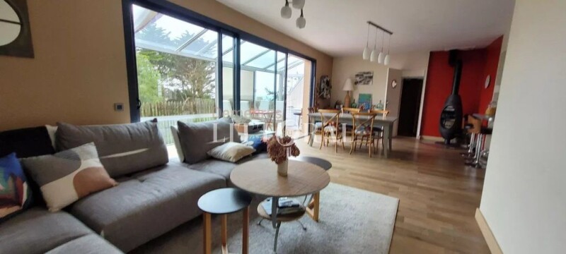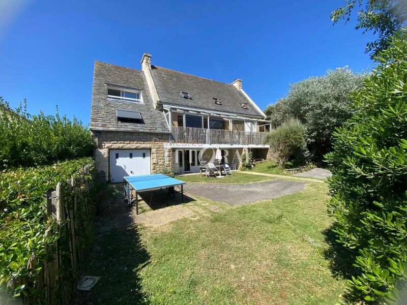 Located just 30 meters from two beautiful family-friendly beaches, perfect for swimming and water sports, this spacious traditional house sits on a landscaped 1,088 m² plot. On the ground floor, you will find an entrance hall, a fitted and equipped kitchen open to a large living room leading to a balcony/veranda, three bedrooms, a shower room, a laundry room/office, and a separate toilet. The first floor, depending on your project, can either serve as an independent space or be integrated into the main house. It features three bedrooms, an office, a bathroom, a toilet, a living room, and a fitted and equipped kitchen with a dining area opening onto a balcony with an ocean view. The garden level, with independent access, has been designed to accommodate three bedrooms, a shower room, a toilet, and a living room/kitchen area that opens onto a terrace and the garden. A garage/workshop/storage area completes the garden level. This property, located just steps from the beach, offers numerous possibilities for various projects.