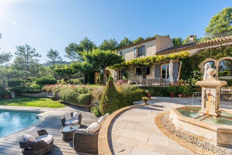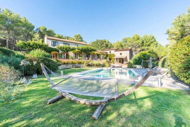 Only 20 minutes North of Aix-en-Provence, between vineyards and hills, nestled in the heart of a 1,8-hectare landscaped land including a 14 x 8 m heated pool, this picturesque Provencal house of about 424 m2 with a huge 100 m2 separate garage. Once inside you will step into the entrance hall with a dressing room, a library area, a living room with a stone fireplace, a dining room opening onto a shaded terrace, a spacious Poivre d'Ane equipped kitchen, a pantry, a laundry room and a study. Upstairs are a library, 3 bedrooms with 2 shower rooms including one opening onto a terrace and a master suite with a walk-in closet and a shower. An annexe comprises an equipped summer kitchen, a master suite with a walk-in closet and a shower room, a billiard room upstairs and a dressing room. The garden features a beautiful living space with a heated pool, a spacious Bourgogne-stone terrace sheltered by the wisteria and its 19th century fountain. It gives the garden a bucolic atmosphere. The property also includes a petanque court, a stone cabin, a shed, an outbuilding and a cellar. This property oozing with charm and character offers a beautiful green and quiet environment, and a quality construction.