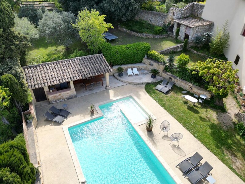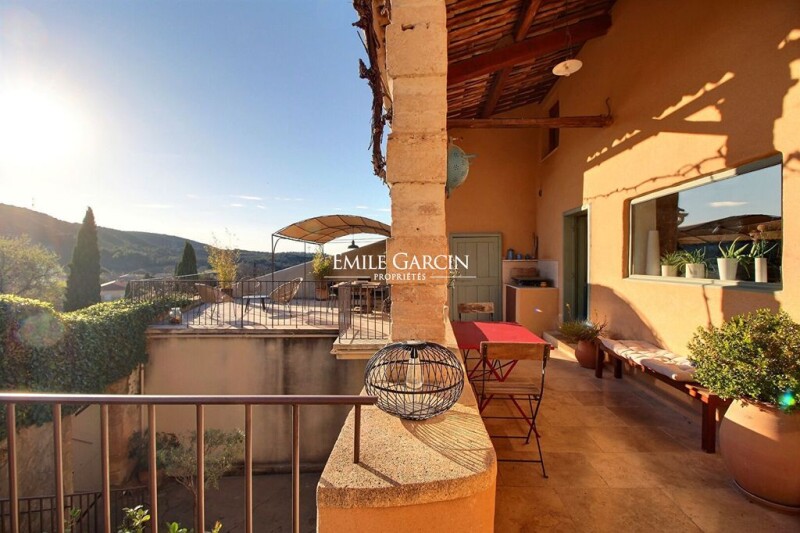 A few minutes walk from the village center, with shops, and 20 minutes from Avignon, this magnificent atypical property is distinguished by its two independent spaces, and its 1250m² garden. With an exceptional view of the castle overlooking the village, the first stone house has retained its charm and authenticity with a kitchen open to the living/dining room with fireplace. 3 bedrooms, cellars and garage. In the second house, there are also 3 bedrooms, one of which is en suite, kitchen, living room, terrace and small garden. An outbuilding has been converted into a studio, allowing additional space.
