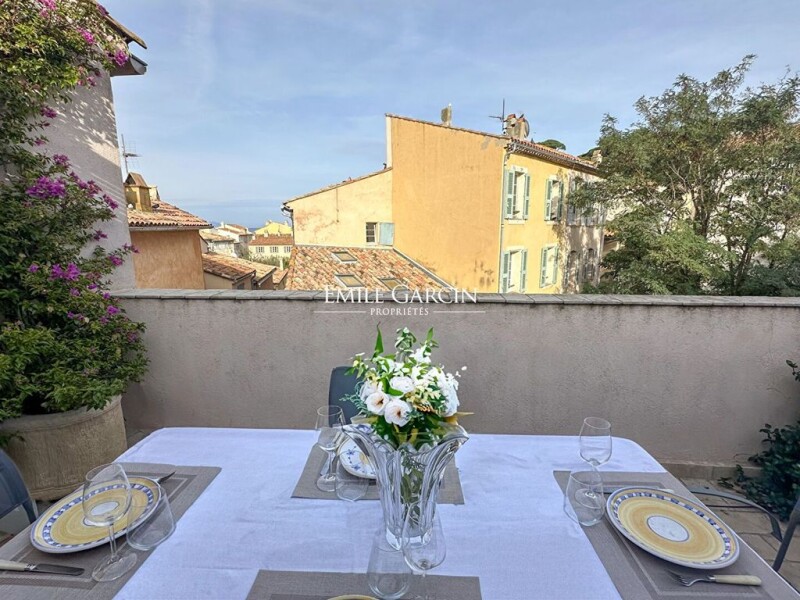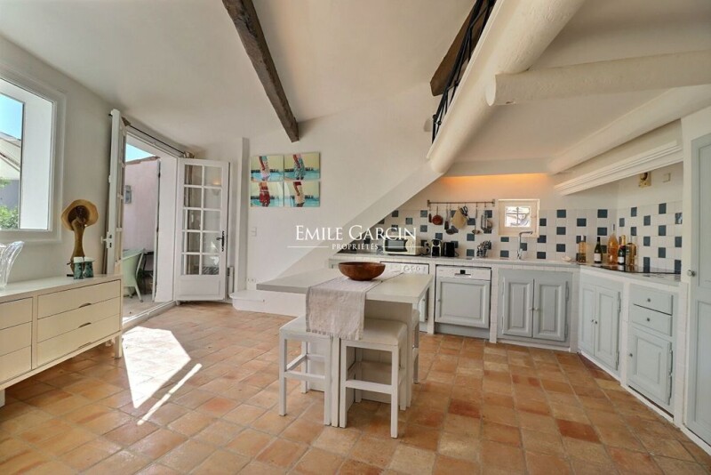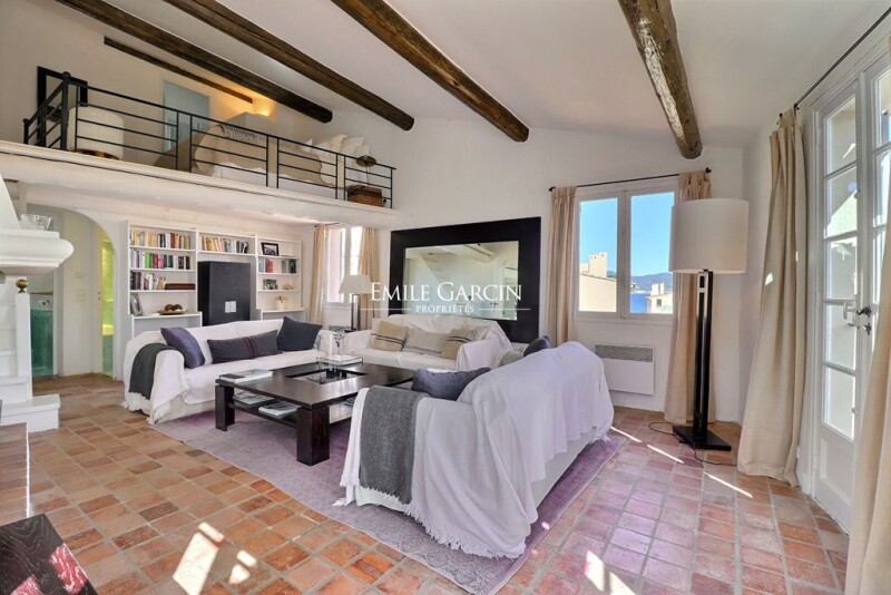 A bright and refined apartment presenting approximately 68 sq.m of living area, idyllically located on the top floor of a typical building in the heart of the historic centre of Saint-Tropez. It comprises a living room and a dining room, each equipped with a fireplace and access to the open-air terrace of 16 sq.m, plus a large kitchen. There is a bedroom on the mezzanine with a shower room and WC. A second sleeping area is also found on the mezzanine. Additional bathroom. Guest WC. Air conditioning. Bathed in light.