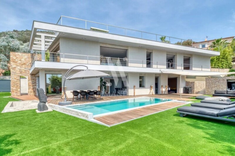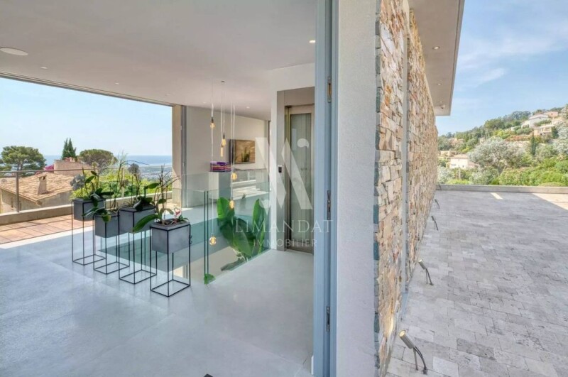 Located on the heights , quiet and at the gates of nature with its hiking departures and offering a panoramic sea view Superb new architect's villa built in 2021 of 300M2 with 1 roof terrace of 180 M² with sea view 1 equipped kitchen, 1 bedroom en suite with dressing room, 2 bedrooms, 1 bathroom Fully equipped with home automation with remote control, double glazing with mirror effect and solar protection, elevator, underfloor heating, and 200 M² teak terrace Parking for 4 cars Mirror pool with salt against current, Pool house Water retention basin, crawl space, everything in the sewer. Information on the risks to which this property is exposed is available on the Géorisques website georisques.gouv.fr.