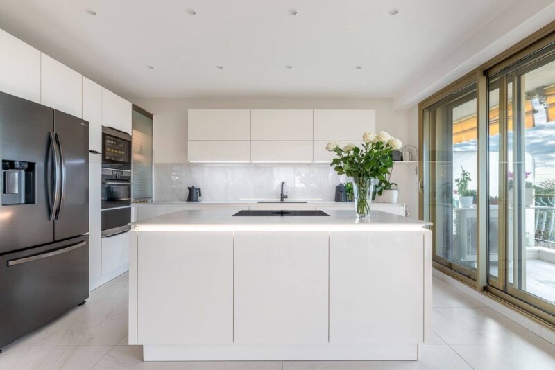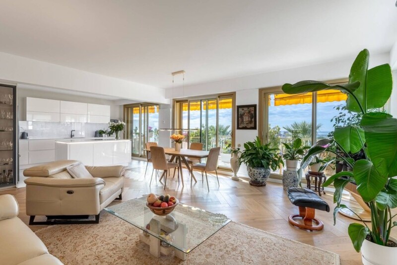 Nice Bas Cimiez - Exceptional 3-Room Apartment with Panoramic Views This 113 m² apartment in the prestigious Bas Cimiez district offers two terraces with a total of 36 m2 with stunning panoramic views of the city, sea, and hills. Located in the exclusive "Résidences El Paradisio," built in 1966 on part of the historic Parc Paradisio, the property is surrounded by beautiful, centuries-old trees and flowerbeds. Fully renovated with high-end materials, the apartment features a bright living area opening onto a southwest-facing terrace, two spacious bedrooms with private terraces and en-suite bathrooms, a guest WC, laundry area, private studio, double garage, two cellars, and communal parking. A rare opportunity to experience luxury and history in one of Nice’s most desirable locations.