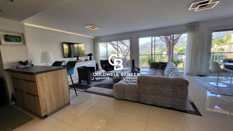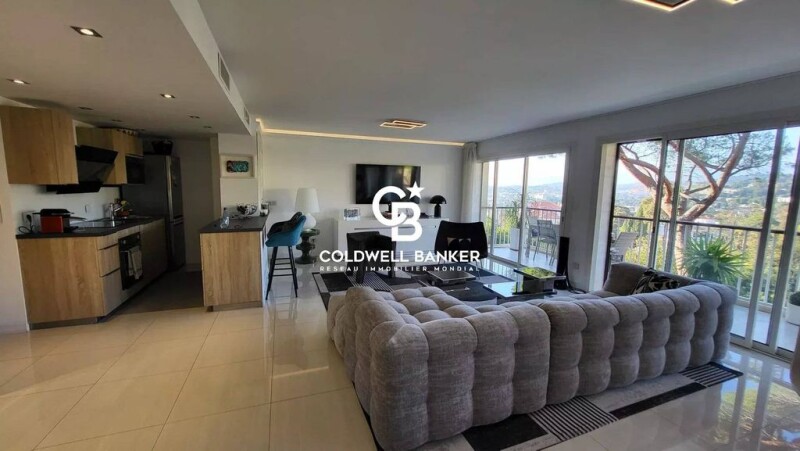 Lovely 3P, renovated in 2020, beautiful terrace with unobstructed view of Cannes and its countryside. Large living/dining room with open kitchen, 2 bedrooms, 1 dressing room and magnificent shower room. Integrated air conditioning, large garage. Fees : 5,19% VAT will be exclusively charged to the buyer Price excluding agency fees : 675 000€ Information on the risks to which this property is exposed is available on the Géorisques website: georisques. gouv. fr.