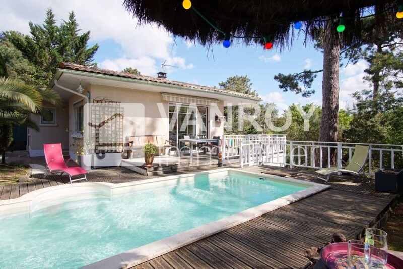 In a quiet, residential area of Les Abatilles, close to the shops, this villa stands out for its luminosity and its triple-exposure living room with a lovely view over its garden, pool and canopy. Set on a wooded plot of around 900 m², the villa and its main level open directly onto its large garden with swimming pool and the street. This layout gives this living space the same use as a flat, with the added advantage of being surrounded by vegetation. This main level, with its 2.80 m high ceilings, comprises: a separate entrance hall, a double living room opening onto a large wooden terrace with a heated swimming pool, a separate, fully-equipped kitchen, a suite with corridor/dressing room, bedroom and shower room, a second bedroom with shower room and separate wc. The lower level, now independent, has been converted into fully-equipped accommodation. It comprises a living room (or bedroom), a shower room/toilet, a kitchen and a study opening onto a terrace with independent access to the street. This part of the building could be rented out to friends and family, or used as a business premises. Parking spaces and garden sheds complete this property. Transport, schools, cycle paths and shops are all close by. This charming, comfortable villa is well worth a visit. You can either move in straight away or let your imagination run free to optimise its use or its remaining potential. Contact us to find out more about this property and visit it in person or from a distance. You're in for a real COUP de COEUR! Information on the risks to which this property is exposed is available on the Géorisques website:.