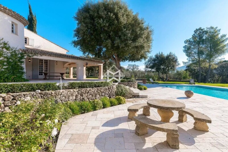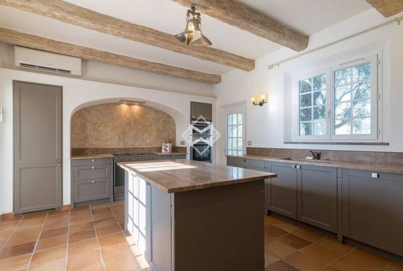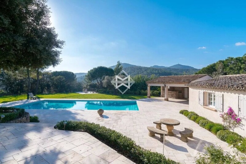 Nestled in greenery, beautiful and charming renovated property offering a nice open view over the hills and the surrounding nature. Hidden from sight, this character property is composed of 3 buildings. The master bastide, on a single storey, including in particular 5 bedrooms, a living room with an antique fireplace, a bar and a wine cellar. A caretaker's house of approx. 150 m² with 3 bedrooms, and a newly-built guest house of approx. 90 m² to be converted, complete this property. The property is set on landscaped grounds of approx. 10 hectares to admire, with an olive grove, a garden with Mediterranean shrubs, a fountain, a lake, a bocce ball (petanque) court, many arrangements made of dry stone and a 17m swimming pool. Possibility of direct access to the property by helicopter (regulated helipad). Garage, air conditioning, car shelter, fitted pool house, will, drilling. An authentic property in the heart of a true haven of peace, between Sainte-Maxime and Le Plan de la Tour.