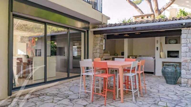 Contemporary villa with roof terrace, fully renovated with panoramic views of the sea, the Esterel and the Tanneron. With approx. 170 sqm of living space, the villa is composed as follows: Garden floor : - 3 bedrooms ; - A bathroom; - A shower room; - Separate toilet. First floor : - Entrance hall ; - Living/dining room ; - Open-plan kitchen ; - Guest WC ; - Master bedroom with shower room and dressing room; - West terrace ; - East-facing terrace with summer kitchen. Second floor : - Roof terrace. The property also features a swimming pool, garage and two parking spaces.
