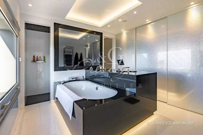 Your agency LG Prestige Immobilier in Mandelieu-La Napoule, offers you this magnificent contemporary villa of 300m² with high quality fittings. Quietly located 15 minutes from Mandelieu in a secure estate, it is built on a 7,000m² landscaped plot. The ground floor comprises a large living room opening onto two large terraces with swimming pool, a pool house with unobstructed views of the hills, a fully equipped kitchen, a master bedroom with bathroom and dressing room, and an office. Garden level: bedroom, bathroom, office, cinema room and two independent 2-room apartments. Garage for 2 cars. Close to the freeway, no work required. État des risques et pollution: en cours (null).