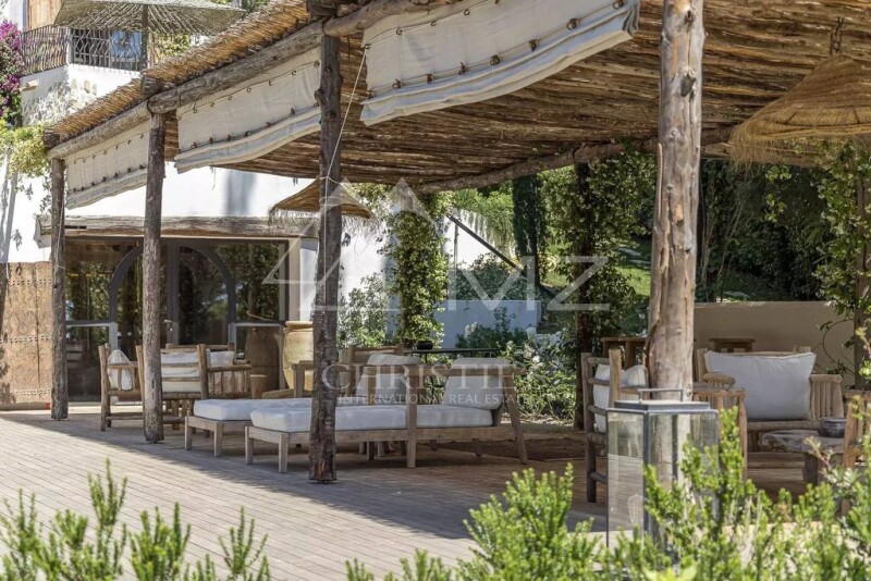 In one of the most exclusive areas of Mougins, in a very residential estate with a beautiful views of the surrounding green hills. This remarkable property has just been completely renovated in a warm and typically Mediterranean spirit with white walls treated with natural pigments, stone floors, woodwork and parquet floors with a raw and natural appearance. The villa comprises of bright reception rooms, a convivial open kitchen, five bedrooms including a master suite with office and dressing room, a wine cellar as well as a beautiful spa area with gym, sauna and hammam. Particular attention has also been paid to the outside spaces with a large swimming pool with pool-house, on approximately 4,500 sqm of mostly flat land planted with Mediterranean species, the shimmering colours of which shine against the whiteness of the façade.