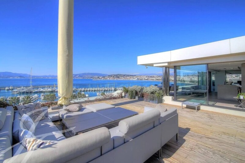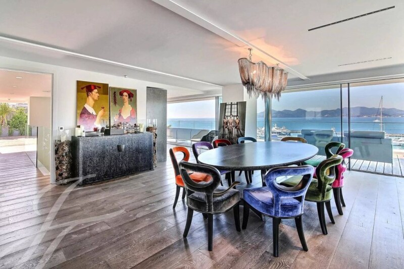 In one of the most prestigious residences on the Croisette, near Port Canto, with a superb view over the Bay of Cannes, magnificent duplex apartment with 580 m² of living space. The apartment's seductive decor, top-of-the-range amenities, 428 m² of terraces and indoor rooftop pool (7m x 3.5m). On the 7th floor, the apartment comprises an entrance hall opening onto a beautiful reception room with living room and dining room opening onto terrace, fully equipped kitchen, wine cellar, laundry room, storage room, master bedroom with dressing room, full Madame bathroom and Monsieur shower room, bedroom opening onto terrace with shower room, as well as a guest toilet. Two further bedrooms with en suite bathrooms overlooking the Croisette and a fifth bedroom with en suite shower room and view of Cap d'Antibes. Children's dance and games room. On the 8th floor, the apartment comprises an entrance hall opening onto a beautiful reception room with living room and dining room opening onto a terrace, fully equipped summer kitchen with wine cellar, guest toilet, as well as an indoor swimming pool (7mx3.5m), sauna, hammam and shower. 3 garages, 3 utility rooms and a cellar.