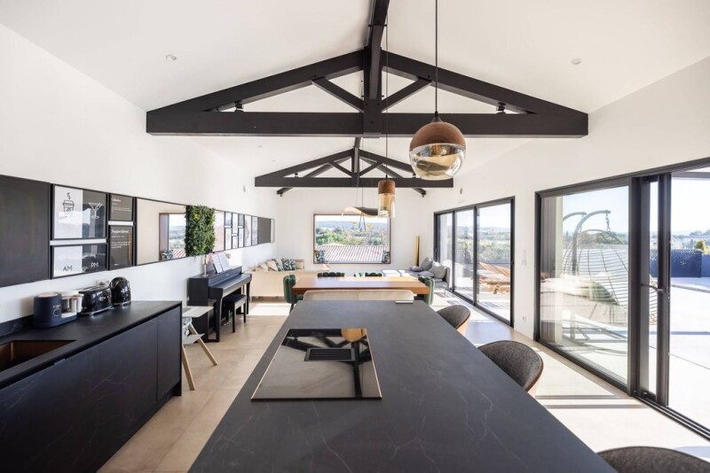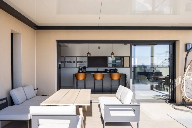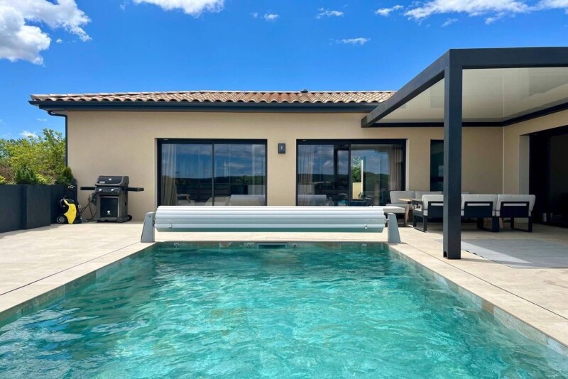 Located in a sought-after neighborhood of Uzès, just a 15-minute walk from the town center and its shops, this contemporary single-story villa offers 188 m² of elegance and comfort, seamlessly extending onto beautiful sunlit terraces. The spacious and bright reception area opens onto the outdoors and features a high-end, fully equipped SMEG Elite kitchen. The master suite boasts a walk-in closet and an elegant bathroom, while three additional bedrooms, each with its own en-suite shower room, complete the night area. An independent apartment adds the perfect finishing touch to this exceptional property, ideal for hosting family and friends or for a rental investment.