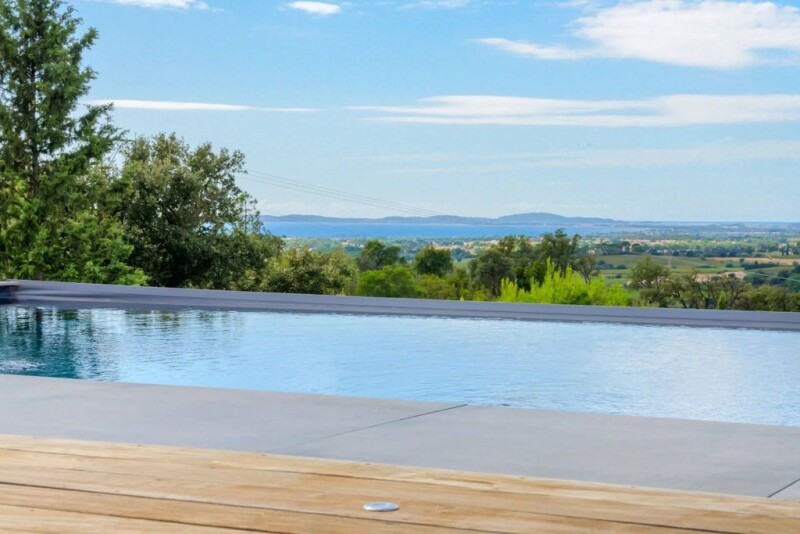 Well appointed villa located in the private domain of Valcros, offering tranquility and security. Built in 1982 and renovated in 2017, this property extends over a 2475 m2 plot, with a living area of around 283m2. On the main level, the property comprises a magnificent open plan, bright and airy, double living room with cathedral ceiling and stove, an open plan fully fitted modern kitchen, and a master suite with shower room. The basement (R-1) comprises a bedroom with shower room, a laundry room, an office, a second bedroom, an additional shower room, a home cinema room, and a gym with a beautiful hammam, which could be converted into a 4th bedroom. Outside, you'll find a heated 8x4-meter saltwater swimming pool, as well as a double garage with electric car sockets and solar panels. To discover more contact us today.