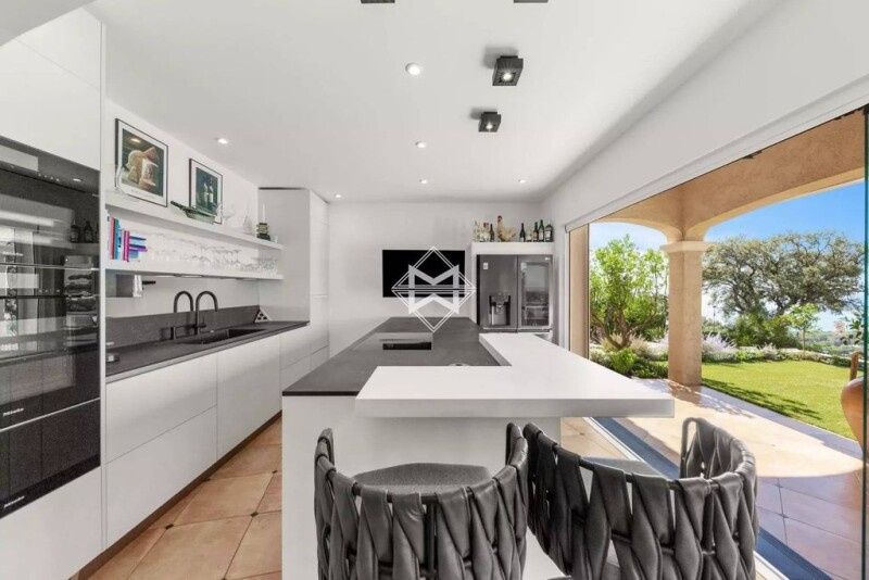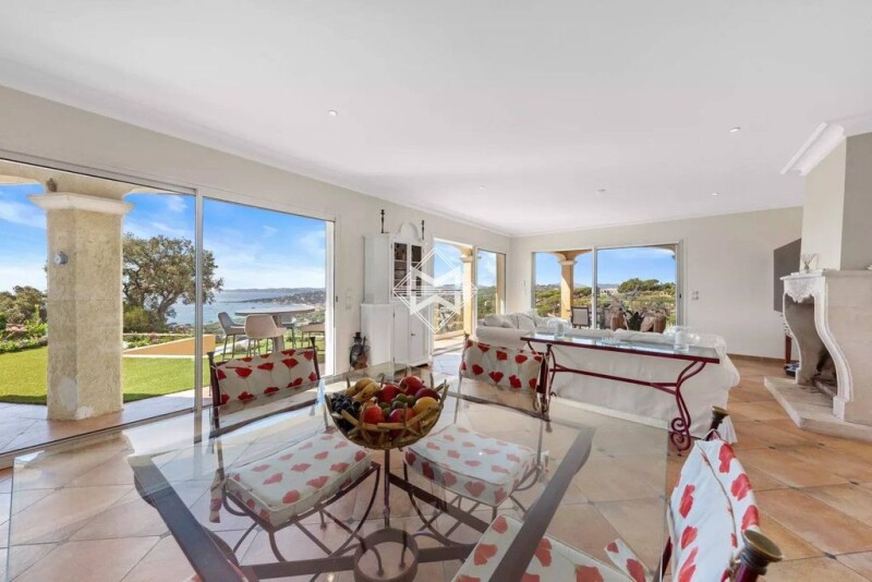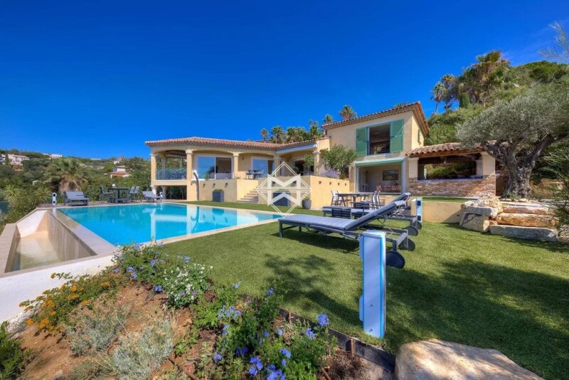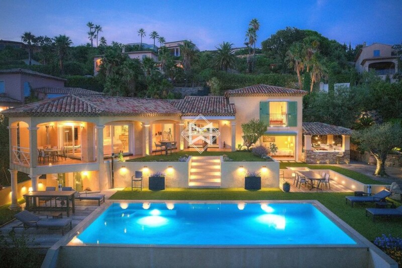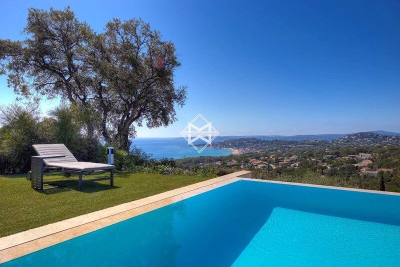 Exceptional panoramic view of the sea, the Village, and the Gulf of Saint-Tropez for this superb property with Provençal architecture, combining modernity and authenticity. Ideally located in the heart of a secure domain in an ultra-dominant position, it offers a breathtaking panorama that is simply mesmerizing. This charming residence, with an area of approximately 216 square meters, features beautiful living spaces, including a living room with a fireplace, a dining room, a large new fully equipped kitchen, and 5 bedrooms, including a studio on the upper floor. Nestled in a haven of peace and tranquility, the lush 1237 square meter landscaped garden, with Mediterranean plants, boasts a heated infinity pool, a lovely summer kitchen, and a pétanque court. Additional amenities include reversible air conditioning, double glazing, fiber optics, an alarm system, a safe, and video surveillance. This character property offers a stunning panorama of the sea, in close proximity to the Nartelle beach, within a natural and preserved environment, behind closed doors and quiet.