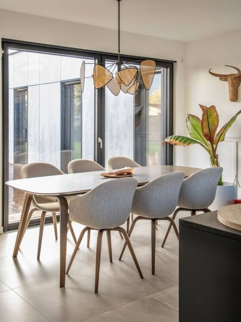 This family-friendly 216 sq. m architect-designed house constructed in 2016, plus a garden and two terraces, is for sale in Métairie (St Sebastien Sur Loire). Just a short distance from the property, you will find a streetcar station, a shopping center and the airport. A bright, large lounge, a dining room, one living room, five bedrooms, including two master suites, one bathroom, one shower room, one separate toilet and a kitchen can be found in this property. The architect's house also benefits from rolling shutters, an intercom system, a security system and an electric gate. The property's south-western exposure is another attractive feature.
