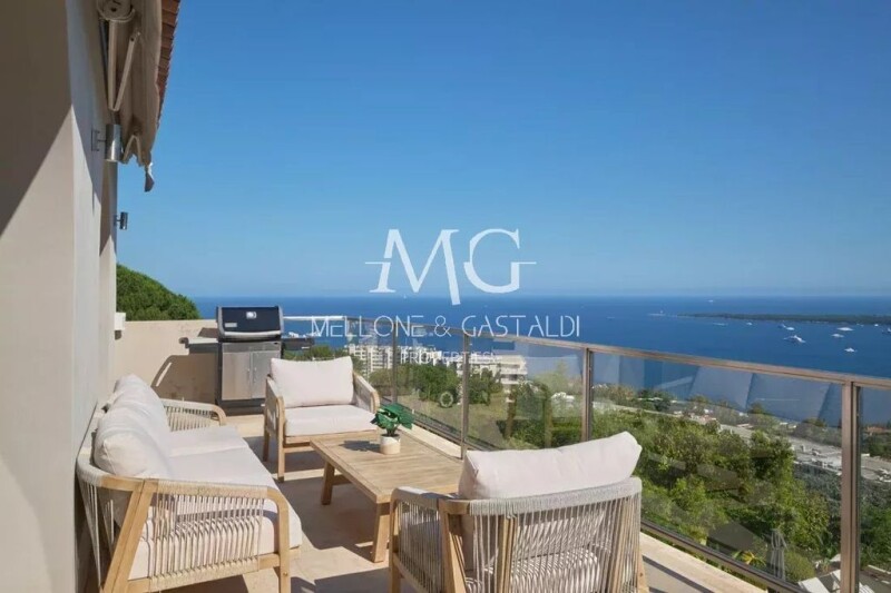 Immerse yourself in the exceptional with this sumptuous 350 m² villa-apartment, a true prestigious setting nestled in the exclusive California district of Cannes. A true penthouse on three levels, it offers a breathtaking panoramic view of the Mediterranean and the Lérins islands An exceptional living environment As soon as you enter, let yourself be seduced by a spacious reception area, bathed in light, composed of a winter living room and a dining room, opening onto a vast suspended terrace facing the horizon. A perfect balance between elegance and functionality A perfect balance between elegance and functionality - Sleeping area: 5 en-suite bedrooms, one of which has a separate dressing room - Day area: 2 living rooms, a dining room, and a modern closed kitchen - Outdoor space: A summer kitchen, an outdoor lounge, and a sumptuous infinity pool - Well-being and comfort: A 50 m² gym, equipped with the latest technologies High-end services Elevator serving all levels 2 closed and secure garages Video surveillance and alarm system A wooded garden for a green setting Ideal location Facing south, this unique property combines absolute privacy and proximity to the beaches, luxury boutiques and the best restaurants on the Croisette Let yourself be charmed by this rare property, where every detail has been thought of to offer an unrivaled living experience.