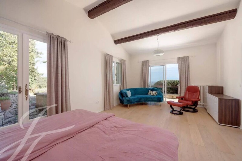 PRICE DROP ! Sole Agent : Located in a peaceful and sought-after area, this beautiful villa, partially built in stone and spanning approximately 200sq.m, offers stunning panoramic sea views. Set on terraced grounds of around 7,500sq.m, it features 4 bedrooms along with a separate guest apartment. Recently renovated with modern comforts, the villa’s ground floor offers an inviting entrance, a spacious and light-filled kitchen, and a generous living room with a fireplace, all opening onto covered terraces. This level also includes a large master suite with a private bathroom and dressing room, a guest WC, and a laundry room. Upstairs, a mezzanine leads to a guest bedroom with an en-suite shower room and a children's bedroom. On the garden level, a two-room apartment of approximately 52sq.m completes this exceptional property. The beautifully landscaped outdoor space includes a lovely swimming pool, a garage, a carport, and a cellar. If you’re looking for a serene and green setting with breathtaking sea views, this villa is a rare opportunity not to be missed! État des risques et pollution: réalisé (null).