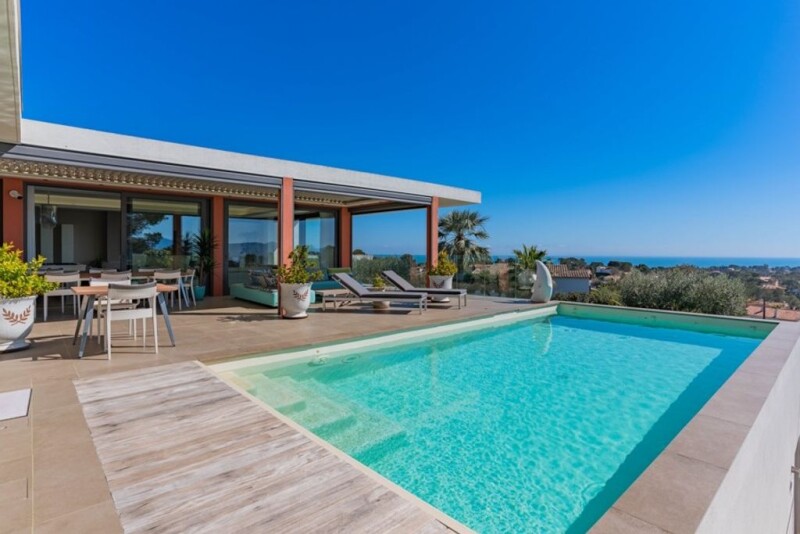 This modern residence offers an incomparable living experience on the French Riviera. With a South-facing orientation, it benefits from exceptional brightness that floods its 375 m2 of living space. This residence, built on a vast 1,529 m2 plot, offers a spacious and intimate living environment where you can enjoy a magnificent sea view. From the entrance, elegance and refinement are revealed through its vast spaces and high-end features. The 5 bedrooms, including a luxurious master suite, invite rest and relaxation, offering everyone a privileged space. From the master suite, the panoramic view of the Mediterranean is breathtaking. Entertainment is assured with a private cinema room, where young and old can immerse themselves in their favorite films in the comfort of their home. The property also offers a worthy outdoor space with low-maintenance grounds, a vast terrace with a heated swimming pool offering an unobstructed view of the Saint-Raphael bay. To complete the picture, an elevator serves the different levels of the house, ensuring optimal accessibility for all family members. Don't miss this unique opportunity to acquire a luxury residence in Saint-Raphael, where the charm of the sea view and modern comfort blend harmoniously.