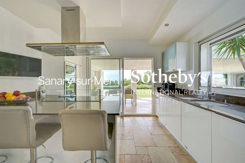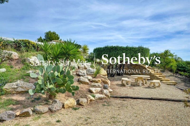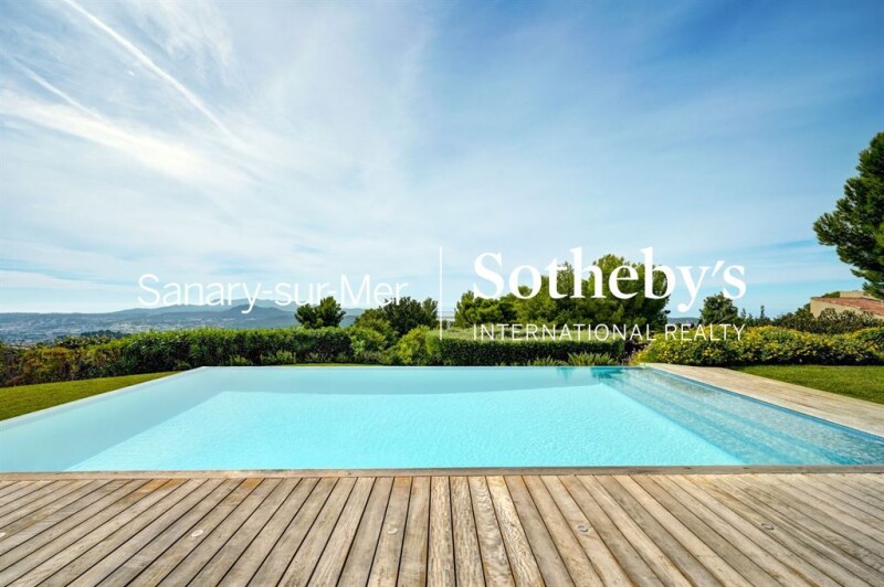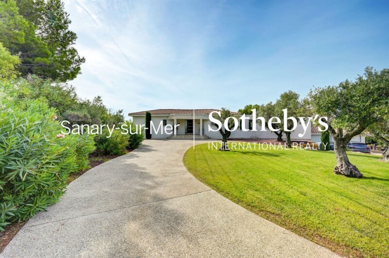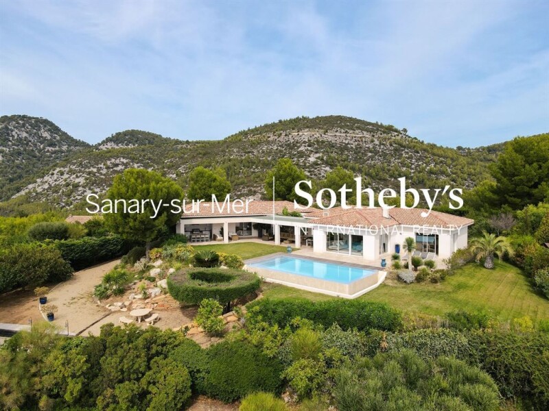 For sale, a single-story villa of 330 sqm with a sea view, perched high above Ollioules. This property boasts a pool, poolhouse, gym, and a beautifully landscaped 4,000 sqm garden. Situated in a dominant position on the hills of Ollioules, just 10 minutes from all amenities and 15 minutes from the center of Sanary-sur-Mer, discover this magnificent 330 sqm villa on 4,000 sqm of outdoor space. Upon entering this bright single-story property, you will be captivated by the infinity pool, seamlessly merging with a panoramic sea view of the stunning Toulon harbor. Inside, the villa features an 80 sqm double living room, a separate kitchen, a master bedroom with an en-suite bathroom and dressing room, as well as two suites with private bathrooms. The garden level offers a separate living space with a bedroom, kitchen, bathroom, gym, wine cellar, and laundry room. Additional amenities include a double garage, carport, summer kitchen, a petanque court, a poolhouse, and a magical sea view that makes this villa truly exceptional. Information regarding potential risks related to this property is available on the Georisques website: www.georisques.gouv.fr.