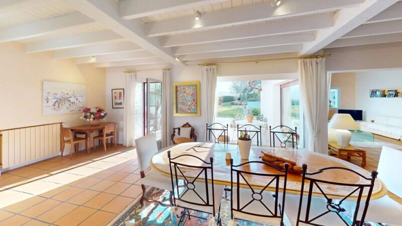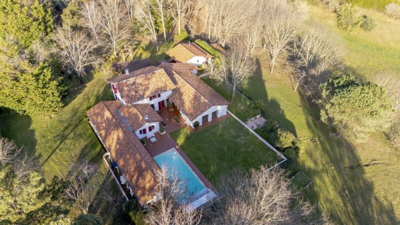 EXCLUSIVE Less than 15 minutes from Biarritz and Saint-Jean-de-Luz, this stunning 350 m² villa, facing south, offers an exceptional setting with breathtaking mountain views. Nestled within a park of over 2 hectares, it combines charm, comfort, and high-quality features. Upon entering, you will be captivated by the generous volumes and the natural light in the living spaces. The ground floor includes a vast reception area with a living room featuring a fireplace, a dining room, a lounge, a fully equipped kitchen with a pantry, as well as a 75 m² master suite with a dressing room, a bathroom, and separate toilets. Two additional bedrooms, each with its own private bathroom, complete this level. Upstairs, a beautiful 40 m² living area with a fireplace can easily be converted into two extra bedrooms. There is also a bathroom and a spacious 25 m² bedroom. This villa offers the possibility of living on one level and stands out for its generous space and numerous development opportunities. The exterior is designed for relaxation and leisure: an 11 × 5 meter heated pool with an electric cover, a wellness area with a sauna and an outdoor shower, a 35 m² bodega with a summer kitchen, a 15 m² wine cellar, and a tennis court. A 60 m² double garage and a 20 m² independent annex complete this exceptional property. A rare gem, ideal for nature lovers seeking peace and tranquility, while remaining close to the beaches and amenities. État des risques et pollution: réalisé (null).