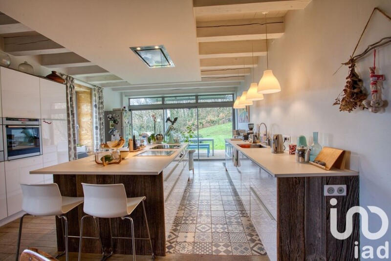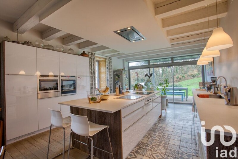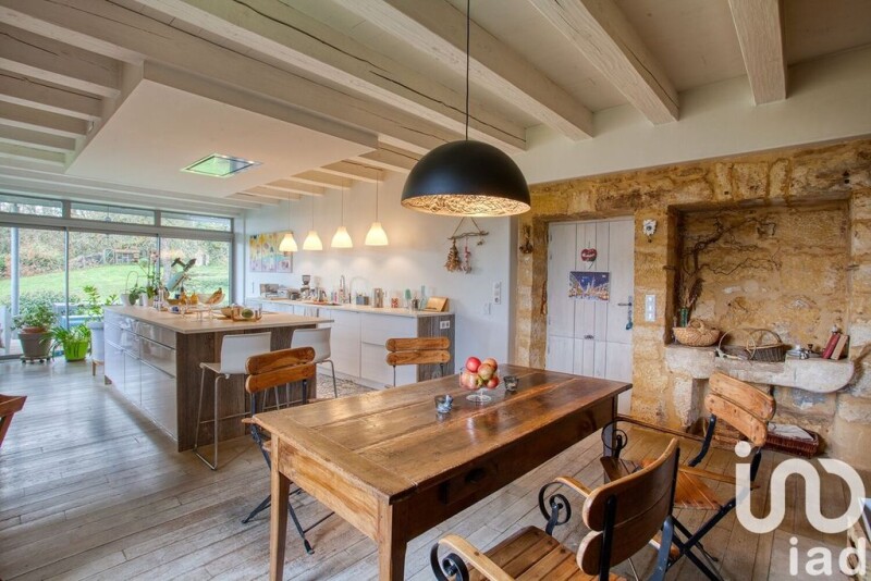 Iad France - Anne FOUQUET offers you: On the heights of Castels, in a quiet area, in a privileged environment with a clear view of the valley, 2 km from all shops, schools, college and SNCF lines, charming real estate complex in local stone with an interior courtyard and its 13th century porch, restored in 2008 by an architect. This character property includes a main house of 238 m² (living room with wood stove, dining room, fitted kitchen and fireplace opening onto two terraces, 5 bedrooms including a master bedroom with bathroom / shower and dressing room, 2 shower rooms, 2 toilets), a guest house of 90 m² on the ground (2 levels), an outbuilding serving as a boiler room, a small tower with a slate roof serving as a storage space (10 m²), a small stone building of 15 m², a storage space of 40 m² and parking for several cars. Swimming pool 4.5 x 9 m and pool house. Beautiful plot of 11,000 m² enclosed by a dry stone wall, planted with trees and sheltered from prying eyes, 40 truffle trees planted in 2014. Central underfloor heating by automatic wood pellet boiler. Cantou and wood stove. Rainwater reserve for irrigating the garden, swimming pool and WC. Central vacuum system. Vaulted cellars. Solar panels for hot water production. Agency fees payable by the seller. Energy display information on this property: ENERGY class C index 166 and CLIMATE class A index 4. Information on the risks to which this property is exposed, including the legal obligation to clear brush, is available on the Géorisques website: www.georisques.gouv.fr. This real estate advertisement was written under the editorial responsibility of Mrs. Anne FOUQUET, independent real estate agent (without holding funds), commercial agent of SAS I@D France registered with the RSAC of BERGERAC under number 382185908, holder of the real estate canvassing card on behalf of the company I@D France SAS. ALUR LAW information: Fees payable by the seller. (gedeon_6727_30227727).