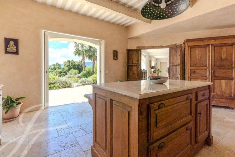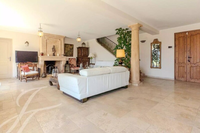 Close to Mougins, superb recent property nestled in landscaped grounds of approx. 7000 sq.m, totaly quiet with swimming pool. Comprising 2 buildings, the main part offers a living area entirely open onto the pool and its panoramic views to the sea, all full south facing with a living room, a fitted kitchen "Poivre d'Ane", a 50 sqm covered terrace, a master bedroom with walk-in waredrobe and bathroom. On the 1st floor, a 2nd master bedroom with complete bathroom, 2 bedrooms (one with terrace) and a shower room. The guest house offers 2 bedrooms with en-suite shower room and an independent studio. This part is ideal for a freelance profession, caretaker, a gym, cinema... with a sea view! A double garage and laundry room complete this property.