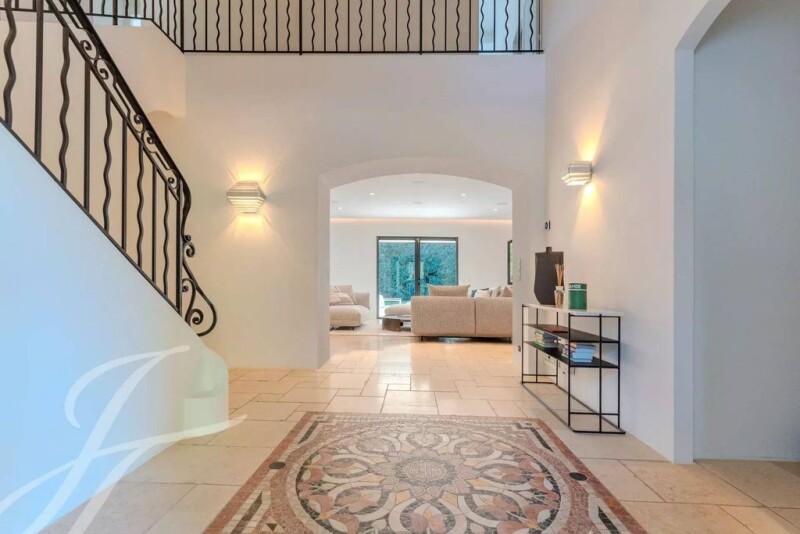 In a residential area, elegant, recently-built family villa in the heart of a 200-hectare private estate comprising 10 properties and an equestrian center, within walking distance of the international school. With approx. 345 sq.m of living space, the villa features a beautiful entrance hall with guest toilet and checkroom, a triple reception room with living room, dining room and fireplace, a vast fully-equipped kitchen with central island and a very functional utility room. On the ground floor, a large bedroom with shower room, that could also be used as an office or as an extension to the living room. Upstairs, 4 bedrooms sharing 2 bathrooms and the master bedroom en suite with study and bathroom. All bedrooms have their own private terrace. A large dressing room completes the first floor. The villa features a gym and an apartment with living room, bedroom and shower room. Vast, flat garden features a heated swimming pool and a large pool house with summer kitchen, as well as a pétanque court. The villa is fully air-conditioned and has underfloor heating.