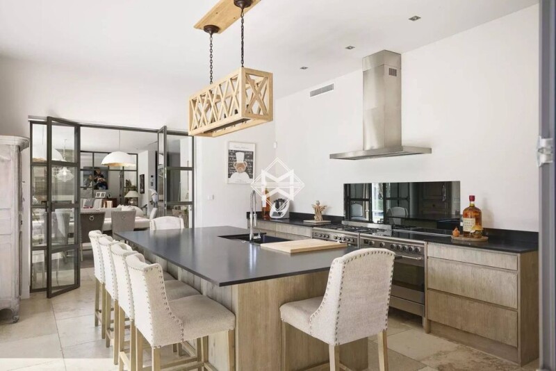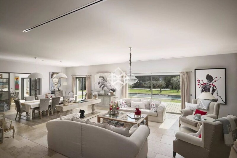 Sole agent: Situated in absolute peace and quiet in a gated estate, this splendid new contemporary bastide is a haven of peace nestling in the heart of a large 4,786 m2 park planted with fruit and olive trees. This elegant, tastefully-decorated 789 m2 bastide benefits from a magnificent 150 m2 living space comprising a double lounge with a double fireplace, a dining room and a kitchen and utility room, all overlooking a beautiful green setting. This splendid property with its exceptional volumes offers five vast suites, each with its own dressing room, as well as a large caretaker's flat. To ensure unrivalled comfort for its occupants, the villa offers a lift, a gym, a games room with pool table, a TV room, a massage room, a room dedicated to the wine cellar and a large garage with space for 4 cars. With its sumptuous pool house overlooking the grounds, heated swimming pool, beach volleyball court and petanque area, this property is the ideal place to create memories with family and friends. Finally, this splendid, peaceful bastide also has the advantage of being within walking distance of shops, just a few minutes from international schools and just 20 minutes from the beaches of Cannes and the international airport.