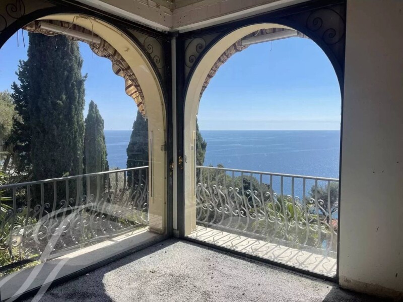 Roquebrune Cap Martin, Belle Epoque villa with sea and Monaco views, approx. 325 m² on approx. 2,500 m² of land, with possibility of extension. It comprises a main villa in need of interior renovation, in unfinished condition, an independent studio, outbuildings, a vast roof terrace, a spa complete with sauna, hammam, jacuzzi and shower. To complete this property, an infinity pool with sea view, a very large garage and an elevator space in the villa. The renovation project offers the possibility of a magnificent transformation, allowing future owners to shape the villa of their dreams according to their personal preferences and style.