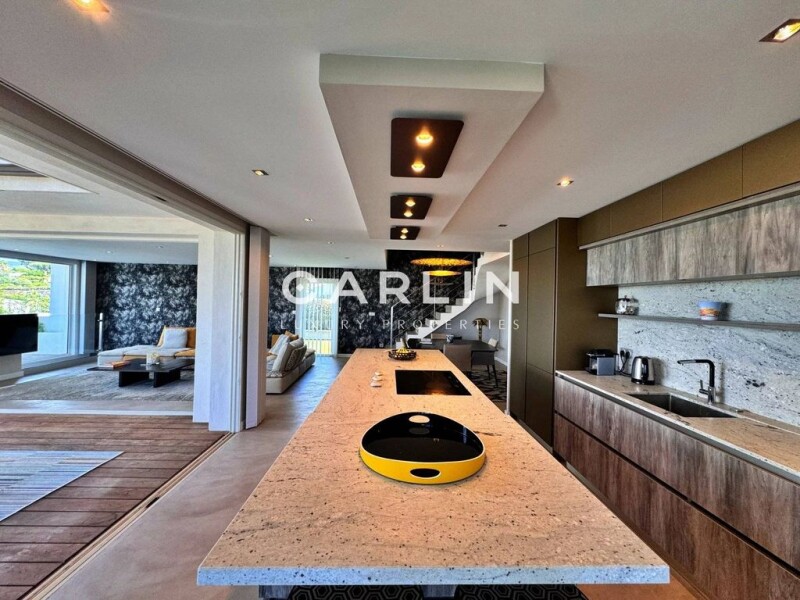 Carlin Luxury Properties presents this sublime contemporary villa located on the heights, in the heart of Sainte-Maxime, five minutes walk from the port and the beach. Quiet, without vis-à-vis and with a sea view, it enjoys a perfect exposure, and its outdoor terraces offer spacious living spaces. With a living area of about 215m2, it consists of a large living room, a dining room, an equipped kitchen, and a first terrace with a heated infinity pool. For the night part, you will find three bedrooms on the ground floor with terraces. On the top floor, a master with its dressing room and boudoir, a bathroom, and its beautiful terrace with sea view. An elevator, a carport, and a large garage of 80m2 complete this luxurious property. Note: the areas are provided for information only. Information on the risks to which this property is exposed is available on the website Géorisques: www.georisques.gouv.fr.