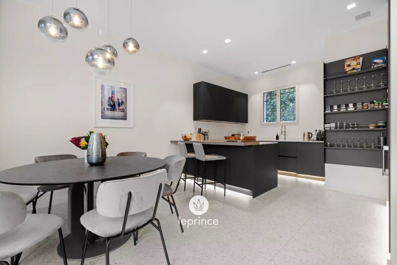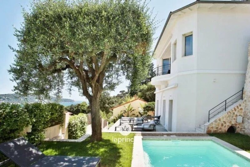 Just steps from the Port de la Darse, beaches, and local amenities, this contemporary 140 sqm villa offers an exceptional lifestyle and breathtaking panoramic views over the Bay of Villefranche, the Saint-Jean-Cap-Ferrat peninsula, and the surrounding mountains. Fully renovated with refined taste and quality materials, the home is spread over two levels and connected by an interior elevator. It sits on a beautifully landscaped 580 sqm plot with a heated swimming pool and elegant outdoor living areas. The main level features a spacious and bright open-plan living area with lounge, dining room, and a high-end fully equipped kitchen, opening onto a first terrace with sea views. A guest restroom completes this floor. The lower level includes three comfortable bedrooms with built-in storage, each with direct access to a large terrace, the garden, and the pool. Two modern shower rooms, a laundry room, a summer kitchen, and an additional independent WC round out the layout. Premium amenities include reversible air conditioning, underfloor heating, a fireplace, indoor/outdoor sound system, home automation, automatic irrigation, motorized blinds, and shutters. Two outdoor parking spaces complete this move-in-ready property, which also offers excellent rental income potential. Full presentation file available upon request. Agency fees payable by the seller. Information regarding potential natural risks for this property is available on the Géorisques website: georisques.gouv.fr.